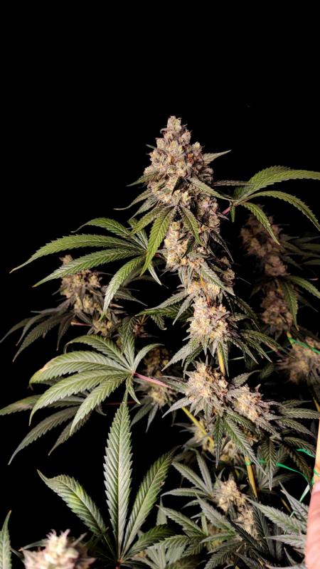 Растение формирует прочную структуру с короткими междоузлиями и развитыми боковыми ветвями, что позволяет без проблем выдерживать тяжёлые соцветия. Высота средняя, с хорошей потенцией к формированию плотных шишек, густо покрытых смолой. Цветение длится от 8 до 9 недель, при этом урожайность стабильно высокая. Подходит для выращивания как в помещении, так и на открытом воздухе. Рекомендуется использовать техники SoG или SCROG для оптимизации пространства и увеличения урожая.